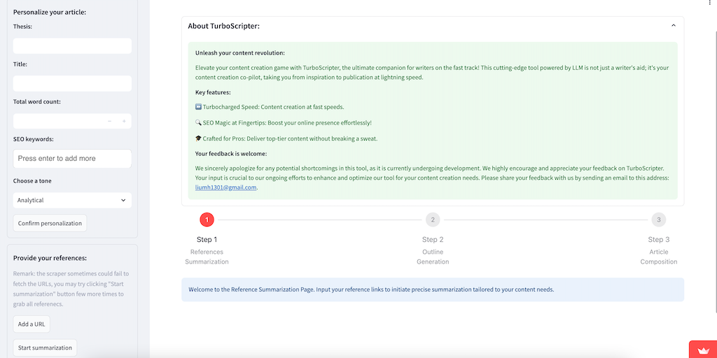 TurboScripter, the ultimate companion for writers on the fast track! This cutting-edge tool powered by LLM is not just a writer's aid; it's your personalized content creation co-pilot, taking you from