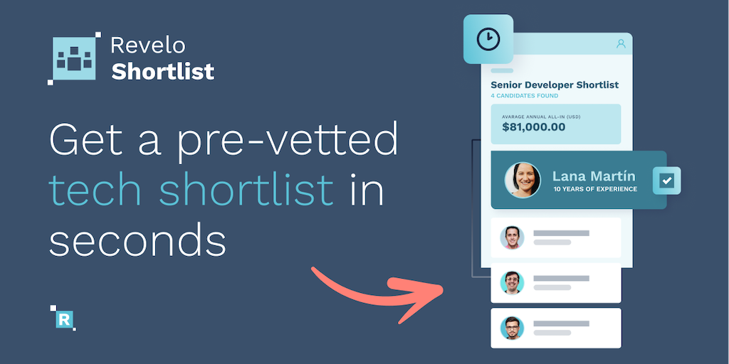 Revelo Shortlist harnesses the power of AI to find, filter, and generate tech-pre-vetted candidate shortlists, moving fast to interviews, assessments, and hiring.