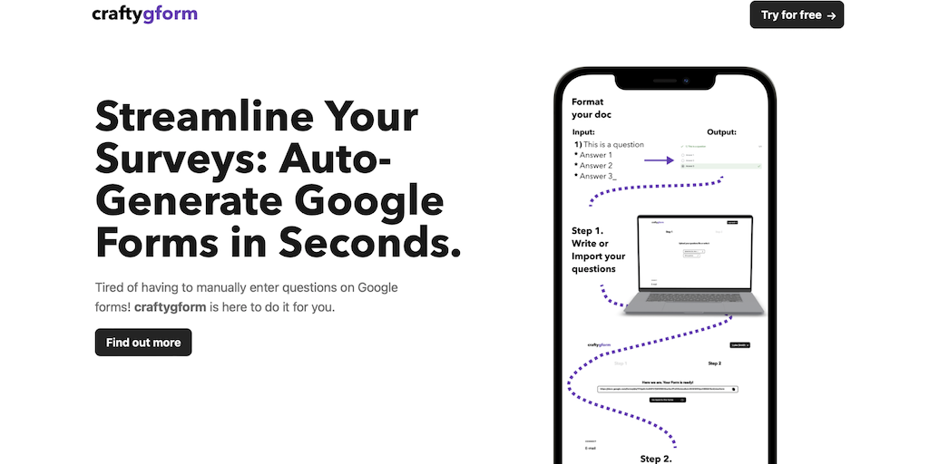 craftygform - Streamline Your Surveys: Auto-Generate Google Forms in a sec | Product Hunt