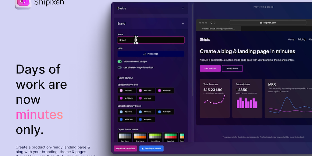 Shipixen - Make customized boilerplates & deploy to Vercel with a click | Product Hunt