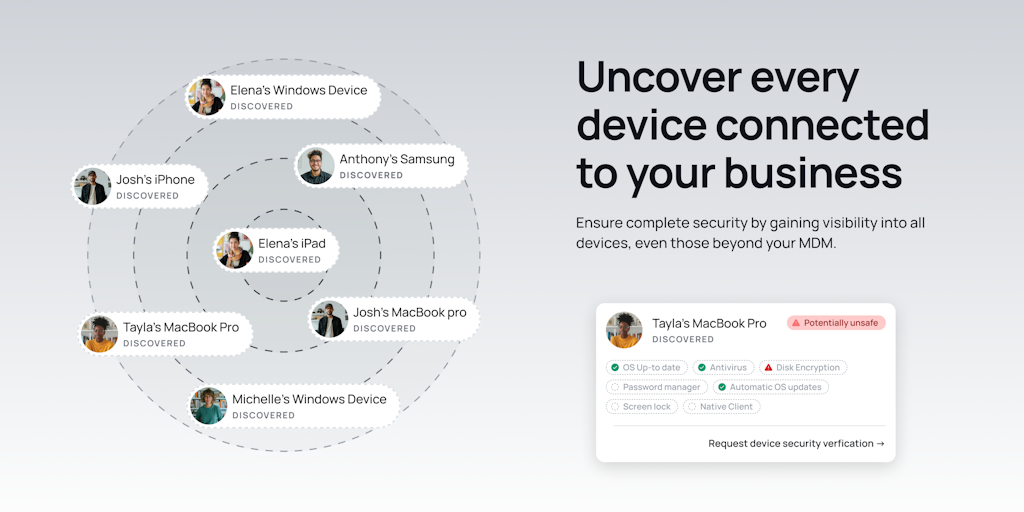 Effortlessly discover and protect every device accessing your business data, without sacrificing privacy or adding management overhead. Ensure security on every device, become compliant with no extra