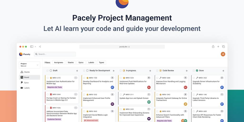 Pacely is a fully-fledged project management tool with an AI assistant that delves into your Github repositories, masters your codebase, and becomes your development companion.