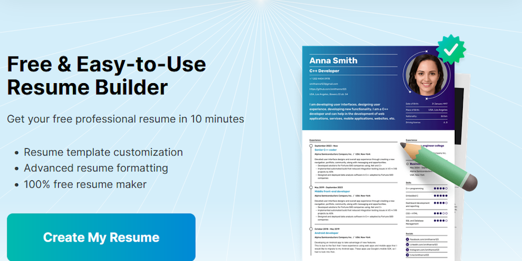 Resume Trick is an online resume builder and cover letter builder that can help you land the dream job. AI-writing assistant, classy customizable templates and resume examples are available.