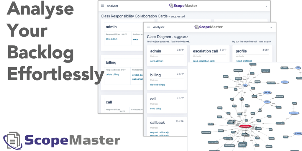 ScopeMaster is the world's first requirements analyser that helps software teams resolve the problems of poor requirements, poor estimates and scope uncertainty.