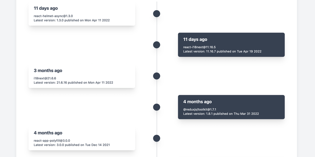 By scanning your package.json or github repo and comparing with our database of tools categorized by their functions, we let you know what are the important tooling you are missing in your projects. A