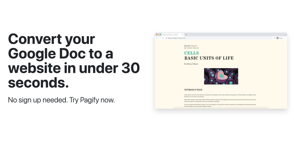 Pagify - Convert your Google doc to a website in under 30 seconds | Product Hunt