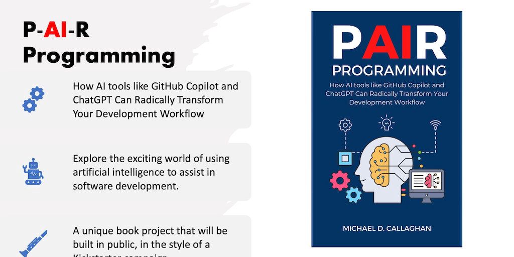 I'm excited to be working on "P-AI-R Programming" - exploring how AI tools like GitHub Copilot and ChatGPT can take pair programming to the next level. Discover how AI can enhance code writing and be