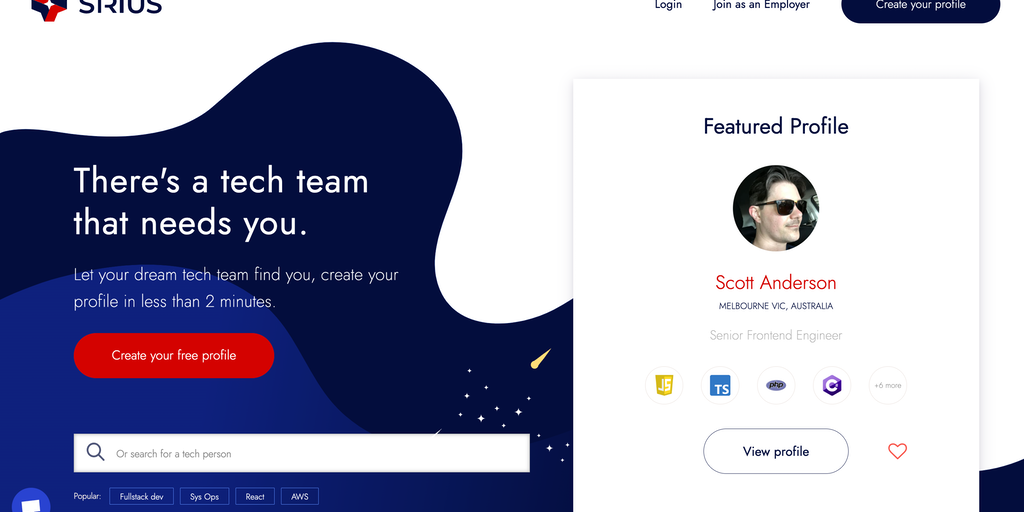 Sirius.dev - Beautiful profiles for talented tech people | Product Hunt
