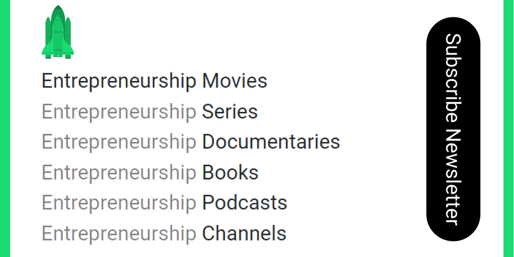 Content is shared in 6 main categories every week! 🎬 Entrepreneurship Movies 🎞 Entrepreneurship Series ⚡ Entrepreneurship Documentaries 📕 Entrepreneurship Books 🎙 Entrepreneurship Podcasts 🔺 Entrepren