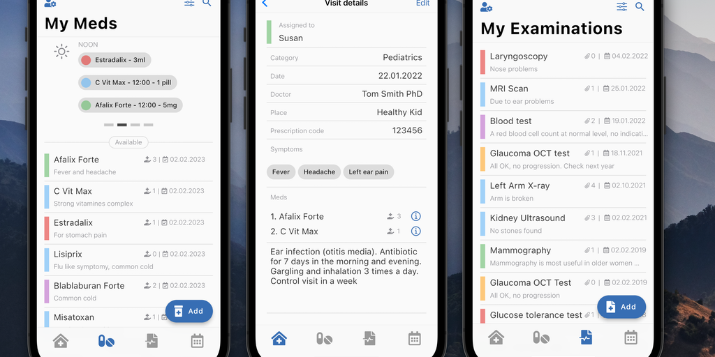Keep the history of your Visits, Examinations and Medicines that you take in the MediRecord mobile app. Plan future appointments and have a better overview on Meds dosage. MediRecord is a modern versi