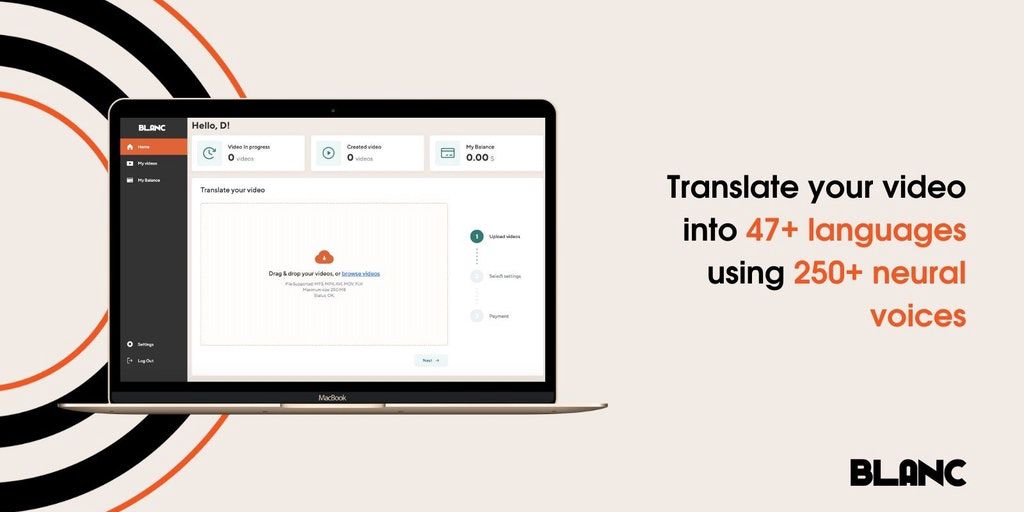 BLANC is an online tool that lets you translate videos into 47+ languages using 250+ neural voices. You can make your video understandable by 95% of the World.
