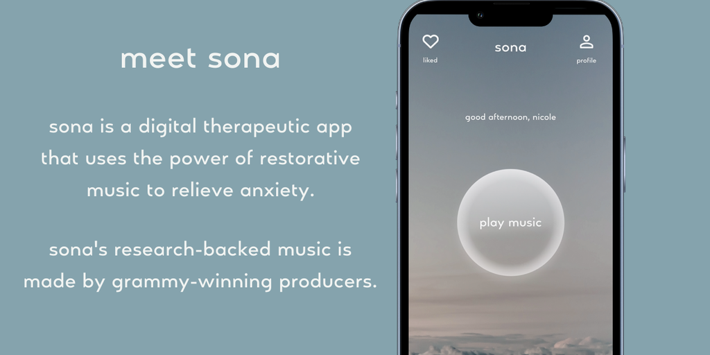 sona's mission is to be the first FDA-approved music-based digital therapeutic app for anxiety. The music is created by Grammy-winning producers and curated artists using a composition process backed