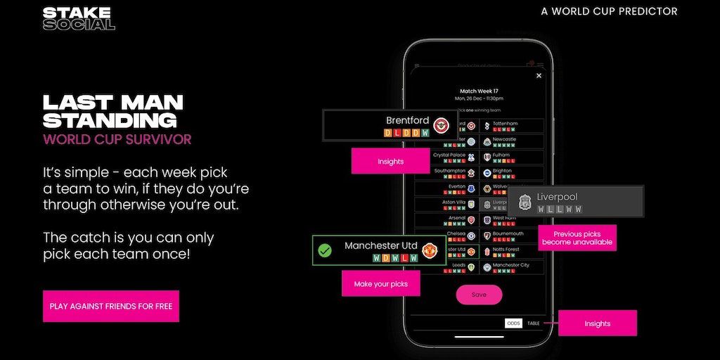 Stake Social - World Cup Predictor - Challenge your friends to be the Last Man Standing ⚽ | Product Hunt