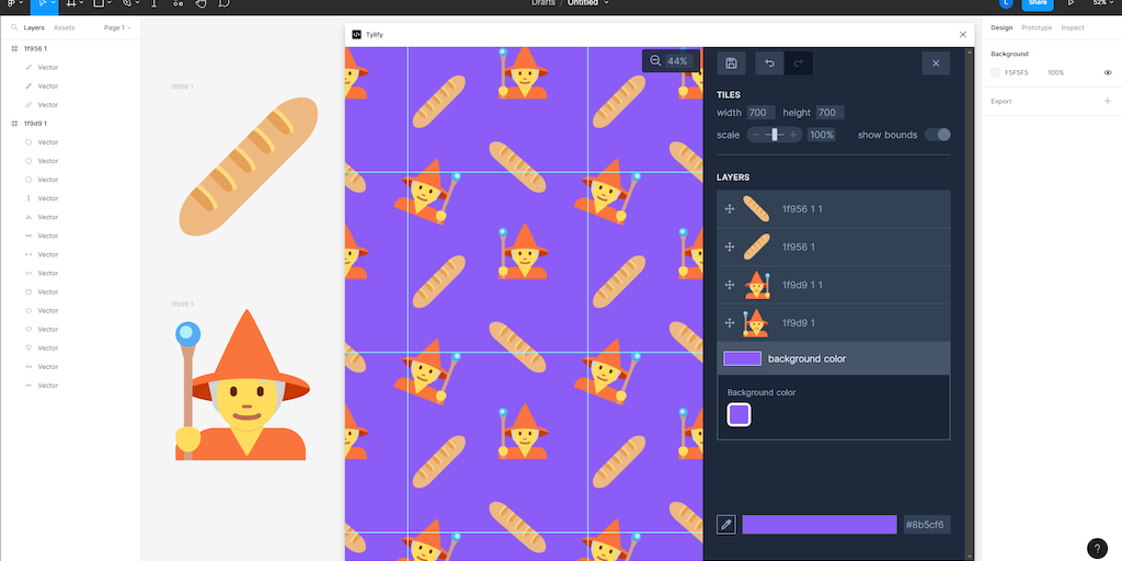 Tylify is a seamless pattern maker that's available as a Figma plugin and a standalone web app. Pattern elements can be vector or raster images. Export formats include SVG, PNG and CSS with embedded b