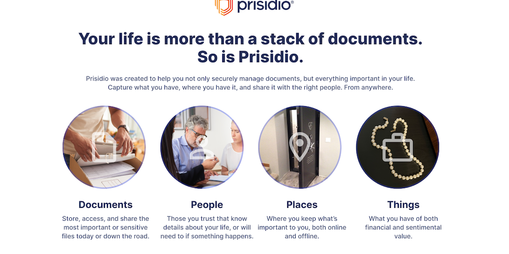 Prisidio is a digital vault that helps you not only securely manage documents, but everything important in your life. Capture what you have, where you have it, and share it with the right people. From