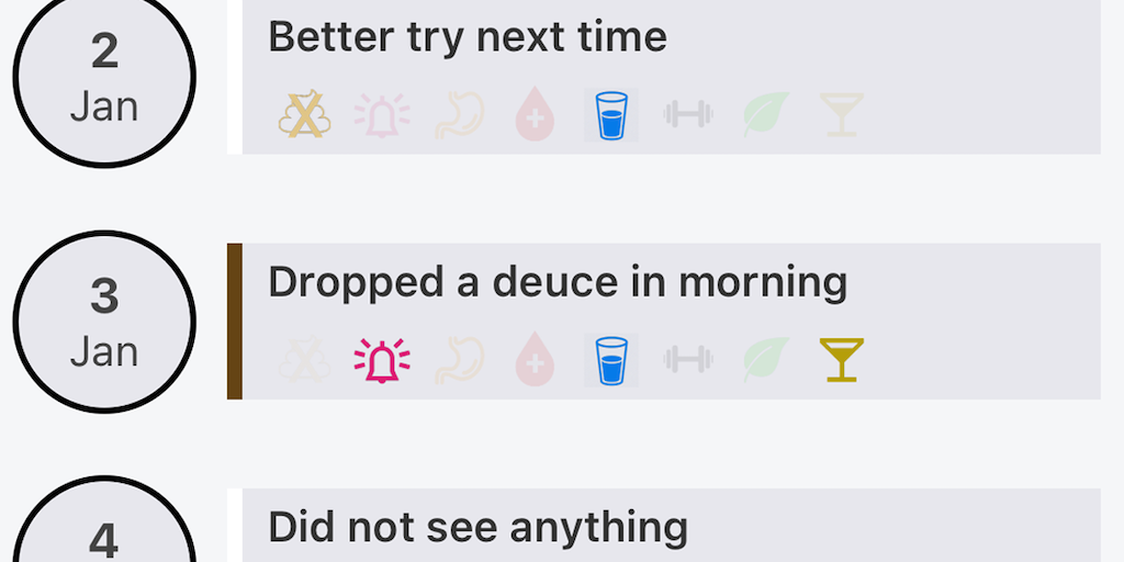 Lets you easily track yours and your family members' bowel movements through single app. Provides ability to add symptoms, habits and medication to see how they are affecting your bowel movements over