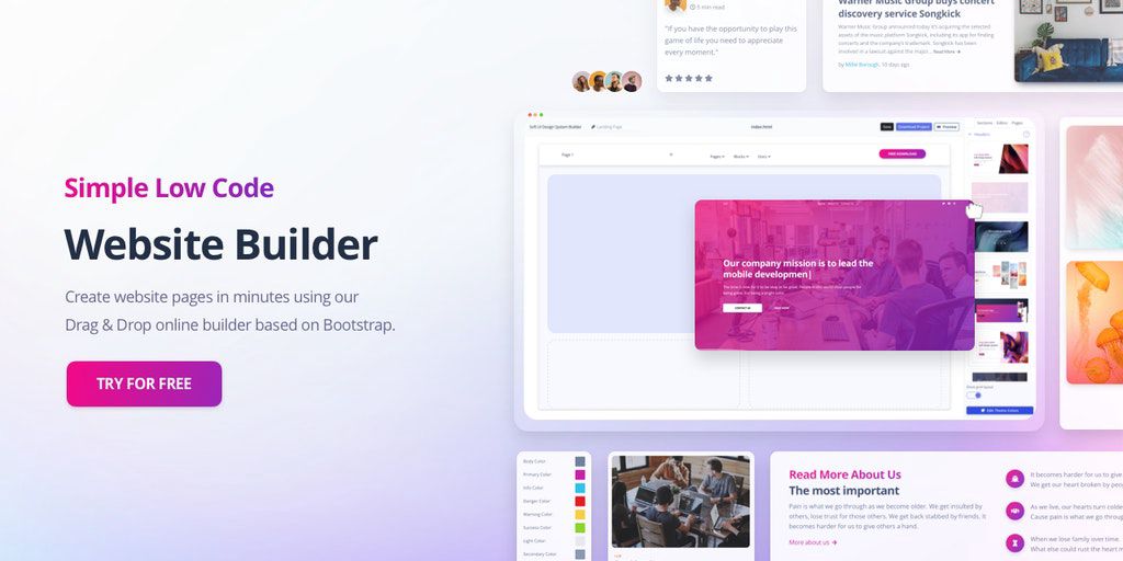 https://www.creative-tim.com/builder/soft-ui-design-system?ref=producthunt is a Low-Code tool that will help you create website pages for your Startup or Business in minutes using Drag & Drop online b