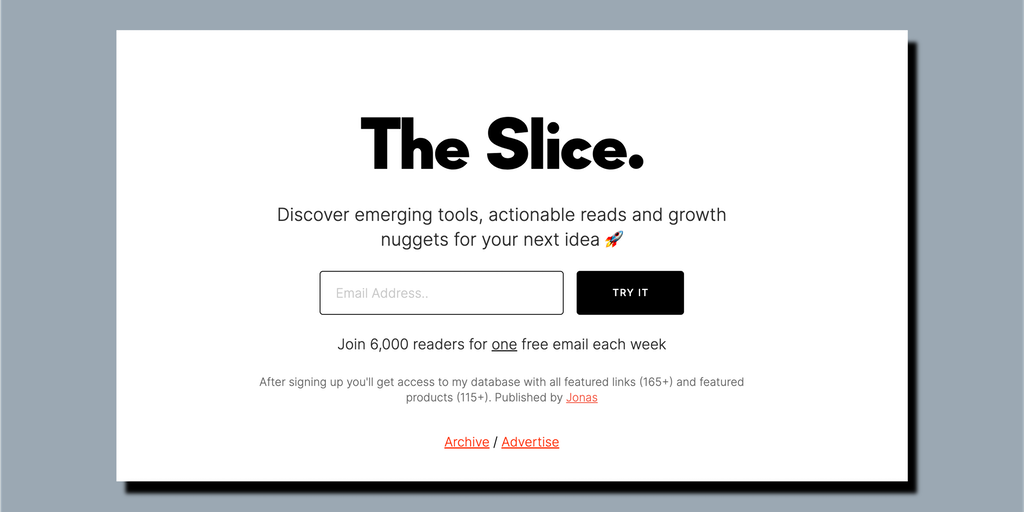 The Slice is a beautifully designed newsletter to discover emerging tools, actionable reads and growth nuggets for your next idea 🚀. Get your weekly five minute break and discover what's out there.