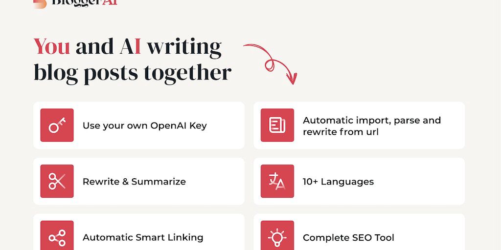 BloggerAI is an AI-powered content editor that allows you to write, optimize, and rewrite blog posts quickly and easily. With advanced SEO tools and 10+ languages support, it helps you increase your r