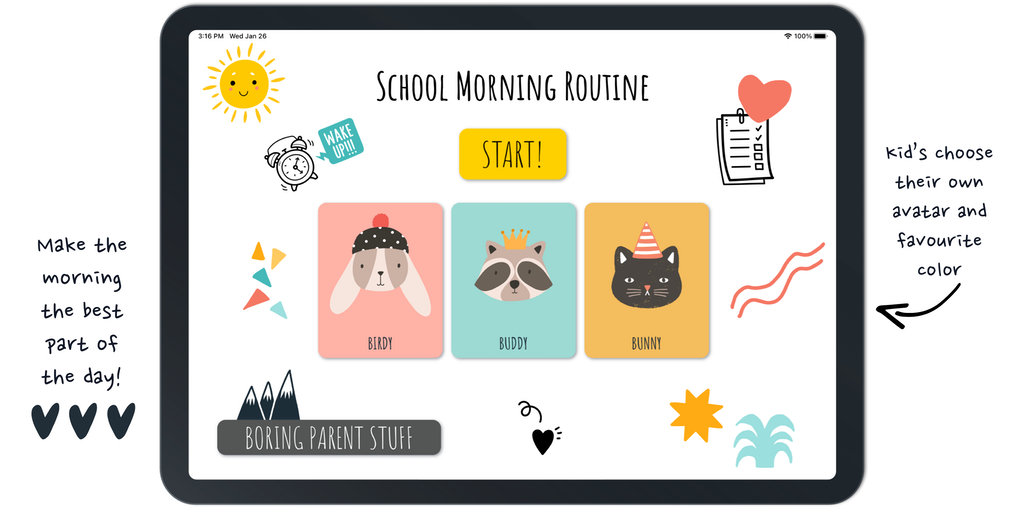 An app to help parents get their kids ready for school without all the chaos. It's a todo list crossed with a game and kids love it. It makes mornings peaceful, easy and even a little bit fun. So you
