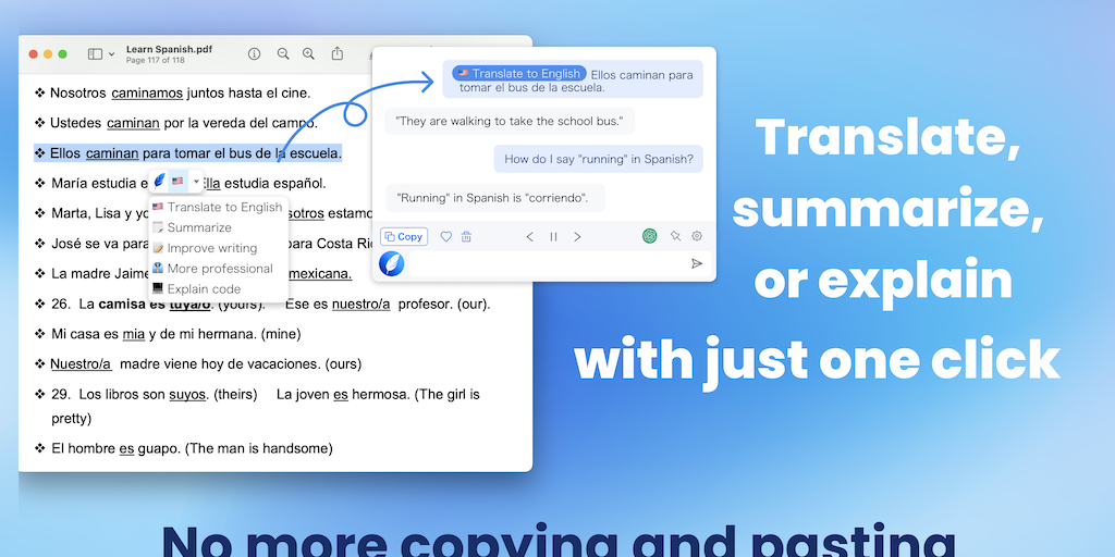 AI Anywhere is a software powered by ChatGPT that can help you translate, rephrase, and explain text selected from any app, chat about anything, and generate HQ content using our best prompts. It work