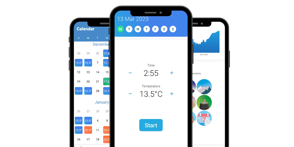 The Cold Shower app provides a great way to track the time and temperature of your cold showers and ice baths. Visualize your progress over time, earn new achievements, and increase your Badass Score