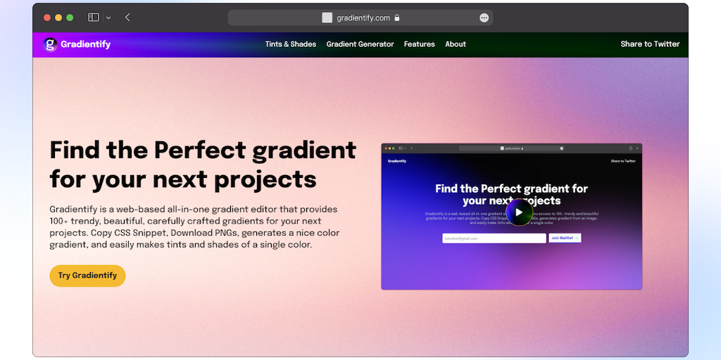 Gradientify - Find the perfect gradient for your next projects | Product Hunt