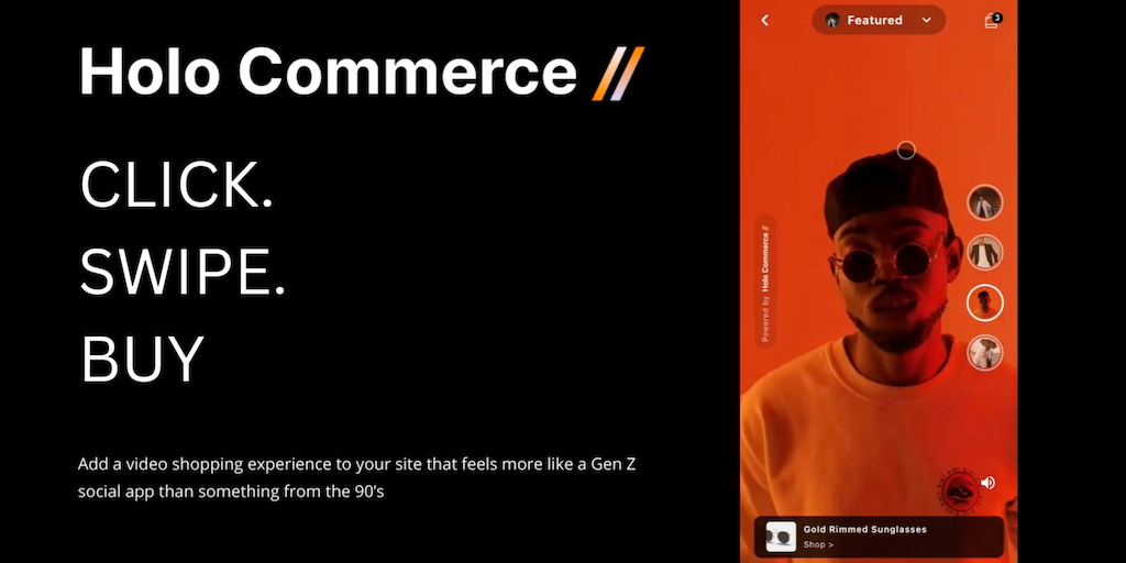 Holo Commerce gives online merchants a plug and play video-first shopping platform they can use to instantly engage visitors in a format they're used to from popular social apps to convert more visito