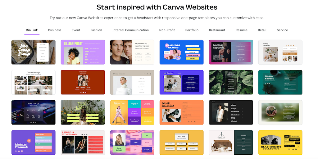Boost your online presence and build your own one-page website in minutes with Canva Websites, no coding required.