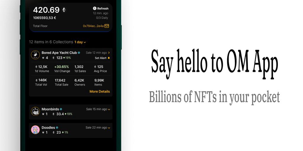 OM app makes your NFT life easy on mobile, you can track floor prices of the NFTs in your wallet or just watch any collection. You can explore trending NFTs by recent sales. You can track gas prices &
