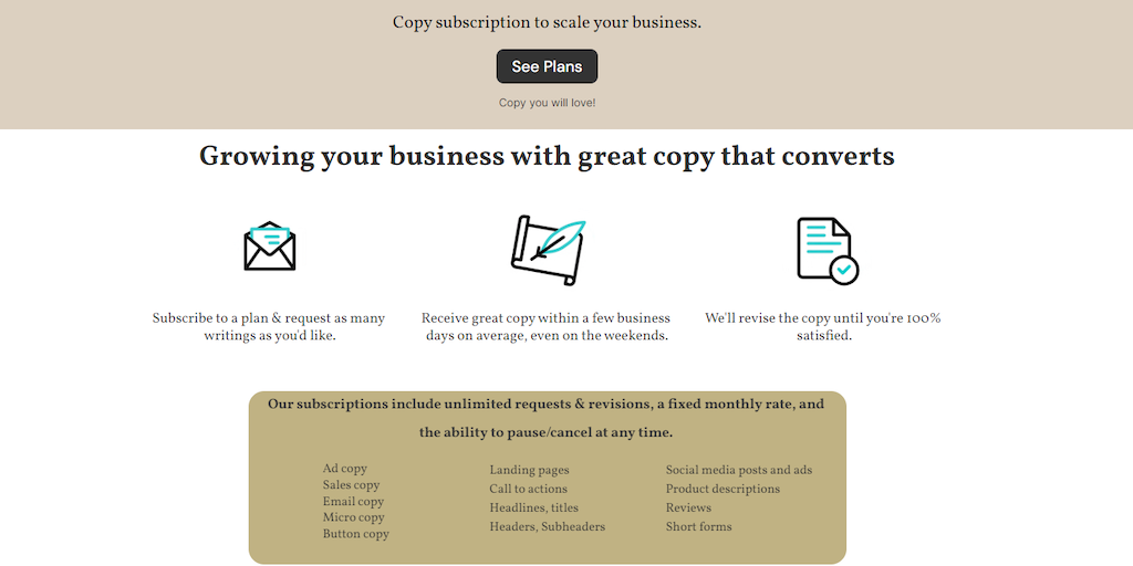 AdvertisAd, the ultimate subscription-based copywriting agency offers a range of copywriting services. Whether you need email copy, ad copy, sales copy, landing pages, attention-grabbing headlines, pe