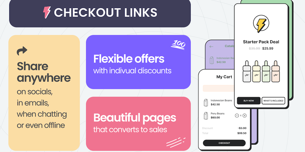 Checkout Links allows you to create shopable links in minutes so that you can sell where your audience lives. ✌🏽