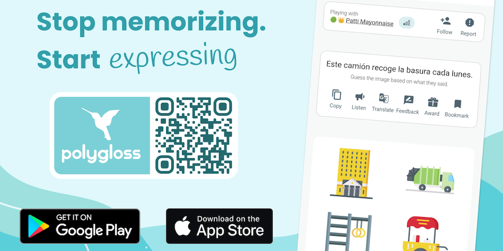 Polygloss is a collaborative language learning game for the intermediate level. Are you stuck in "I can understand but can't speak"? Then Polygloss is right for you! Guess images and have fun with a l