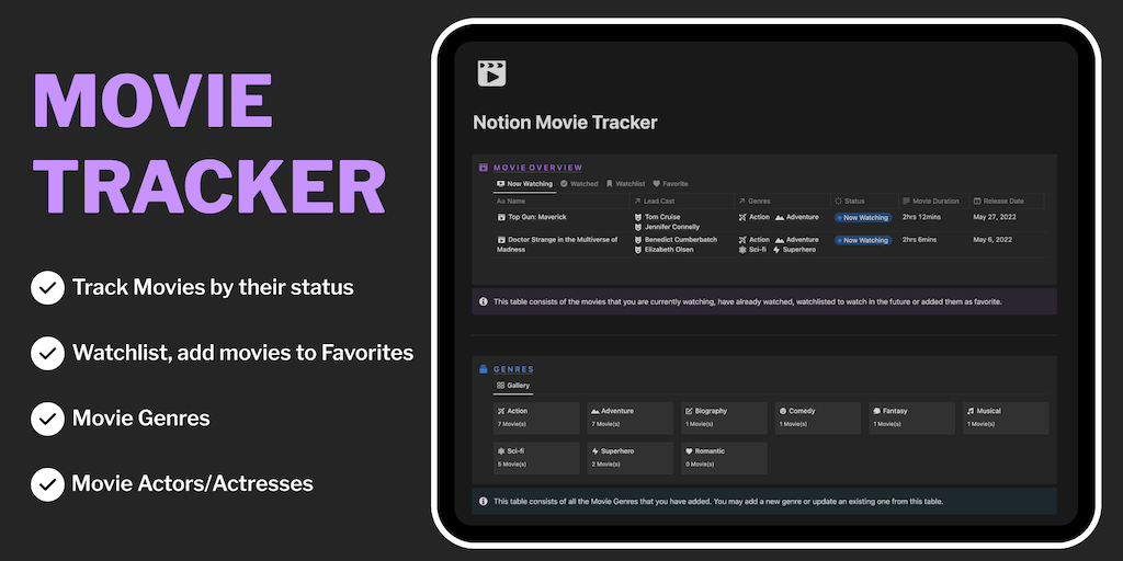 Notion Movie Tracker - Track, Watchlist and Favorite Movies in a simple manner | Product Hunt