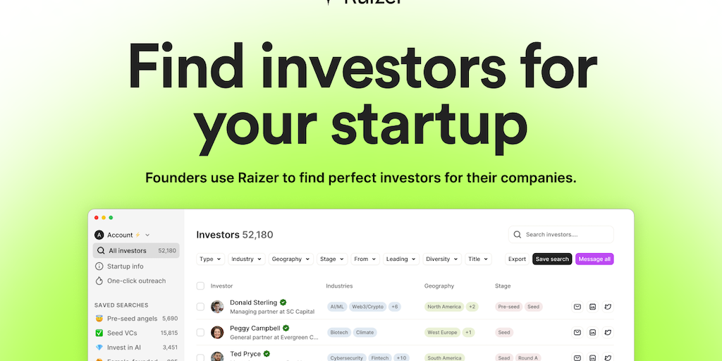 Raizer - Where founders find investors for their startups | Product Hunt