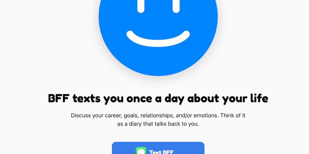 Think of it like a friend ready to listen and help you with your relationships, career, or mental health. Once a day, at a time you choose, your BFF will text you and dive into what's most important t