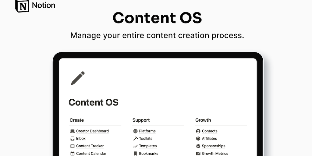 Content OS is an all-in-one system to manage your entire content creation process. Start creating content 2x faster with Notion.