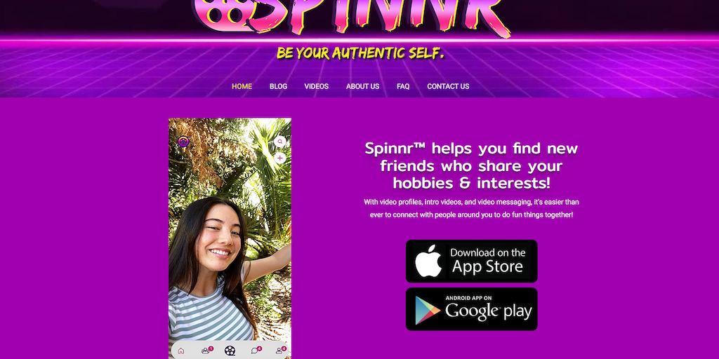 Spinnr is a video app that helps you meet new people who share your hobbies and interests, so you can do fun activities together!