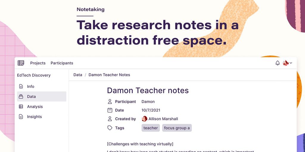 Consolidate raw research notes and videos in Notably, where you can analyze and theme your data across participants as rows in a table and sticky notes on a canvas. Share insights in a repository to d