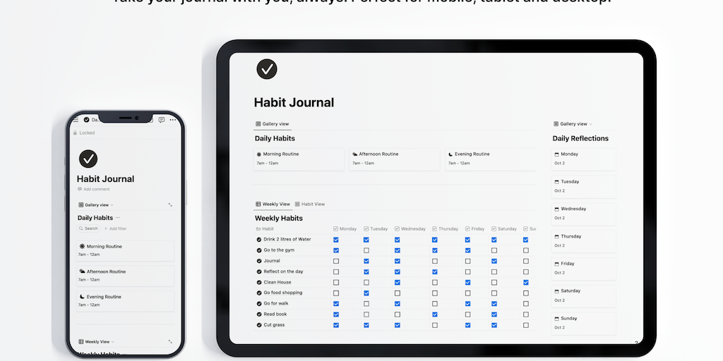 A habit and reflections journal, in your pocket! Habit Journal is designed to be your daily companion for your routines, habits and daily reflections.