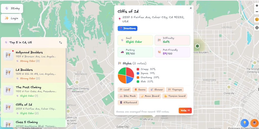 Your Shoe Smells-Map for stinky gyms: Crowdsourced website for rating bouldering gym's smelliness | Product Hunt