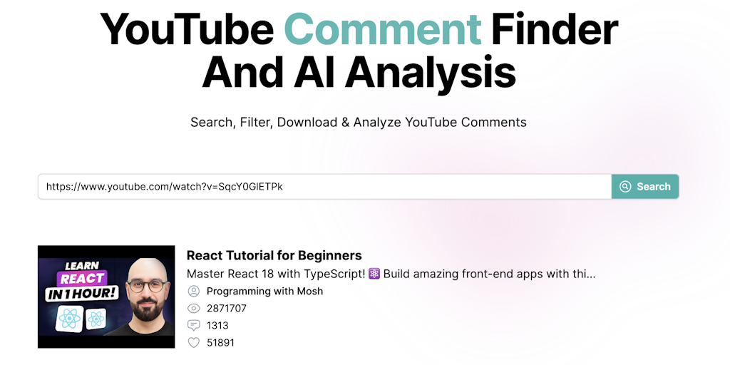 YouTube Comment Finder And AI Analysis - Search, Filter, Download & Analyze YouTube Comments | Product Hunt