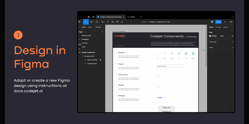 Codejet helps builders code 50% faster by converting designs to production ready code. Create a project in Figma, and Codejet will convert it into clean and open TypeScript code (along with RWD and un