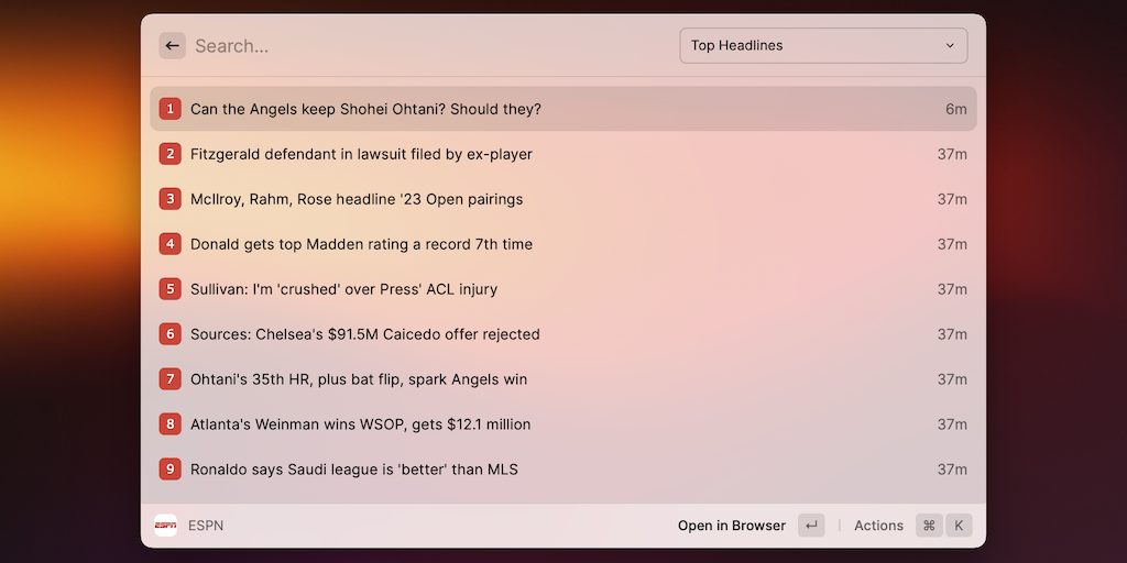 As a big sports fan, I want to stay up to date on all sports news. Now you can do that right in Raycast on your macOS computer. Choose your favourite section, browse the news and read it in your favou