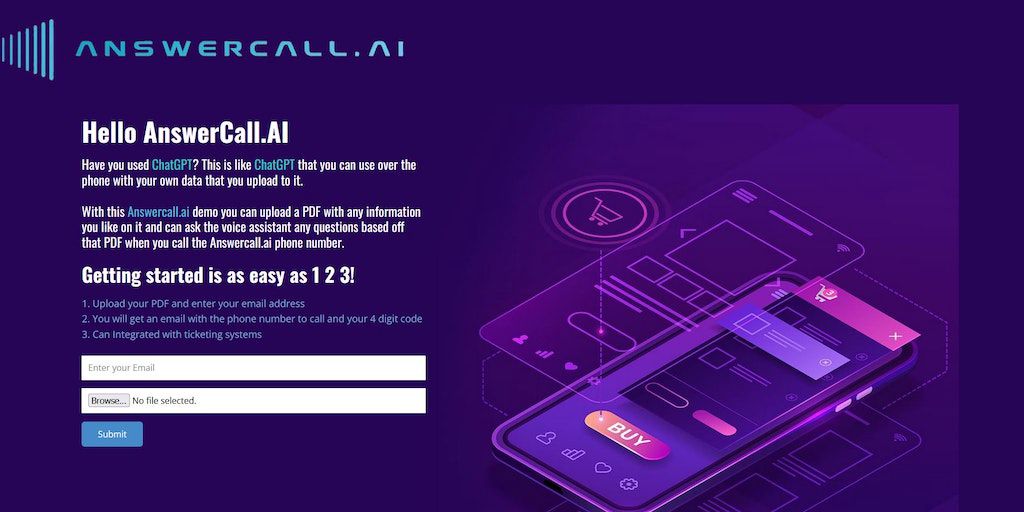 Have you used ChatGPT? This is like ChatGPT that you can use over the phone with your own data that you upload to it. AnswerCall.ai is an advanced application powered by OpenAI's state-of-the-art lang