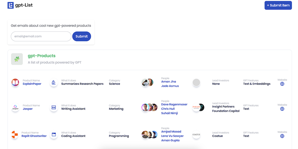 gpt-List is organized by whether the product relies on GPT, or whether GPT is just a feature, or whether it’s an infrastructure tool. Built for investors, builders, professional users, engineers and f