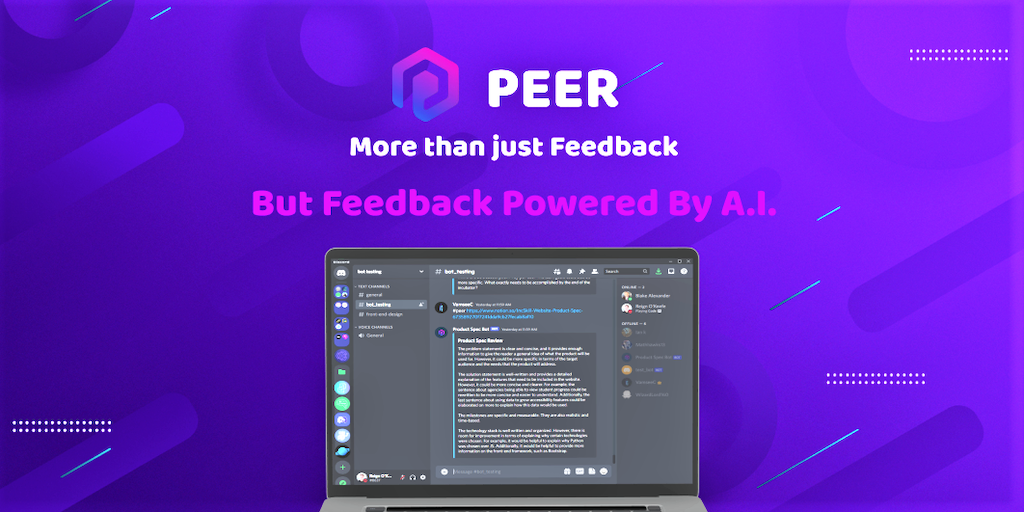 A Discord Bot powered by A.I. that generates written feedback for a product spec. All you have to do is give the link to the Notion page containing your product spec to our bot, and PEER will do the r