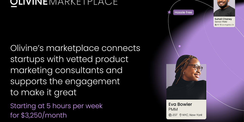 Brought to you by Olivine, leaders in product marketing since 2016, our certified consultants have experience at top tech companies including AWS, ServiceNow, and Uber, along with dozens of early-stag