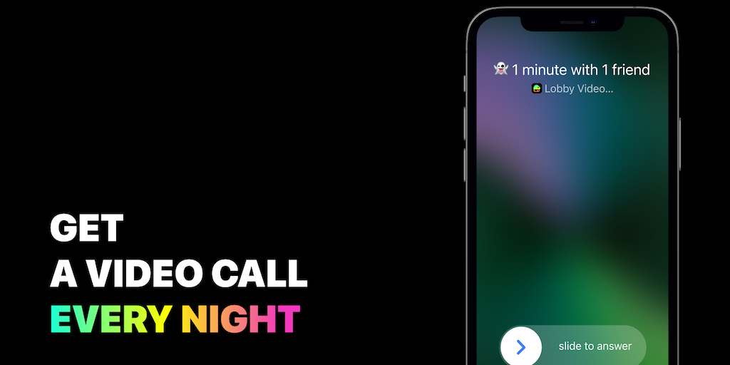Lobby is a passive social app for spontaneous video calls: 1) Get a call every night; 2) Talk to a random friend of yours; 3) You don’t know who it is until you pick up; 4) Call ends in 1 minute. Put