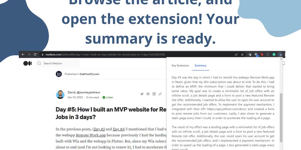 AI Alfred is your best friend for summaries. It can summarize whatever you want in seconds using our own AI model. You don't need to copy and paste any text or link. You just need our Extension! 1 sin